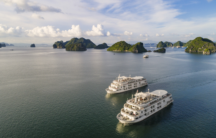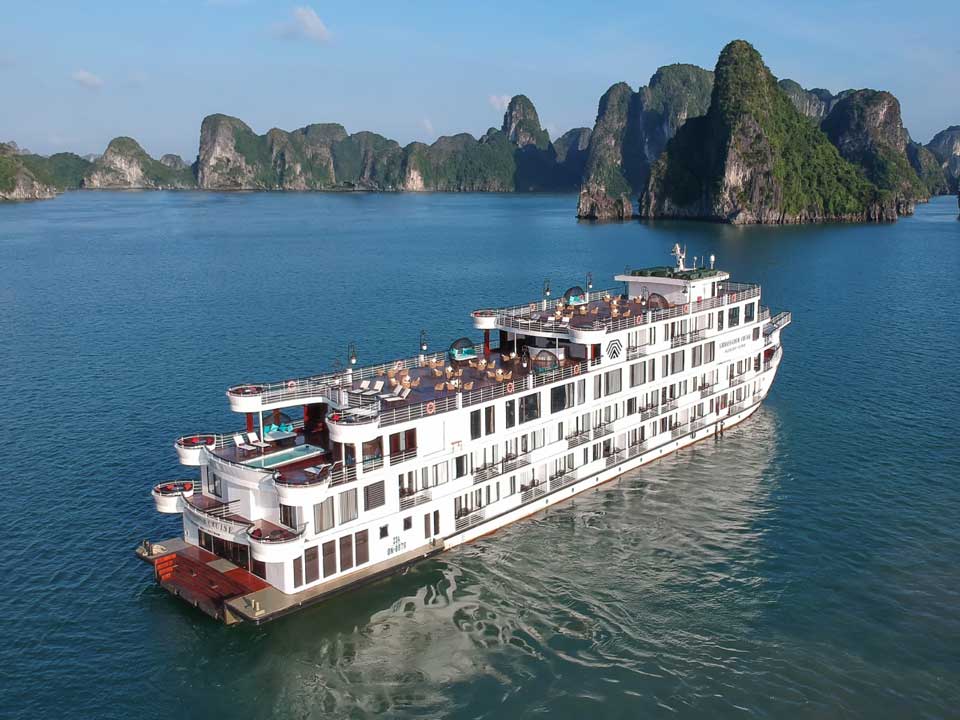 12:00: Thưởng thức bữa trưa trên du thuyền do đội ngũ thủy thủ đoàn phục vụ.