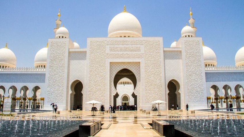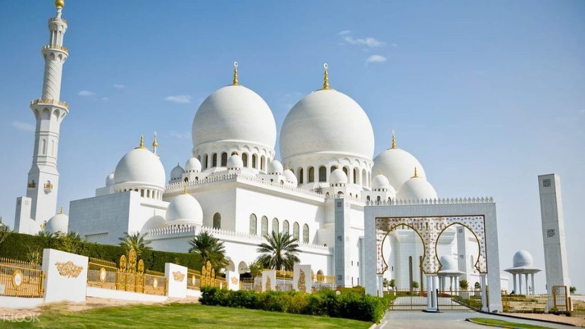 Thánh đường Hồi giáo Sheikh Zayed – Đây là thánh đường xa hoa bậc nhất thế giới, mang sắc trằn chủ đạo và được làm từ nhiều chất liệu quý giá như đá cẩm thạch, vàng,…